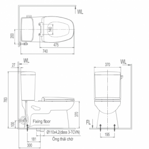 Bản vẽ kích thước INAX AC-504A CW-H18VN – Bồn cầu thông minh Aqua Ceramic nắp điện tử
